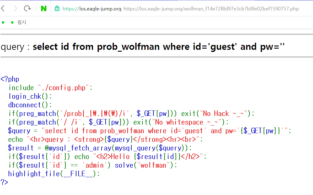 if(preg_match('/ /i' ,$_GET[pw])) 인 공백키를 사용하면 안되는것같다...