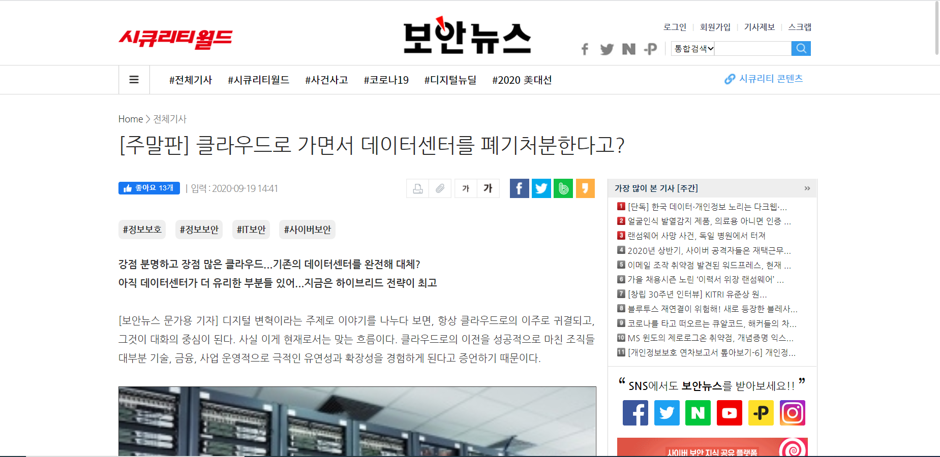 [보안뉴스 한줄요약] 클라우드로 가면서 데이터센터를 폐기처분한다고? 본문