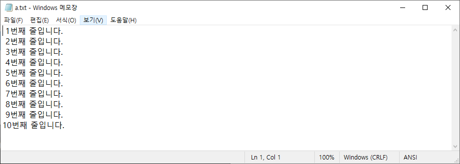 | a | 추가모드 - 파일의 마지막에 새로운 내용을 추가 시킬 때 사용 | ||