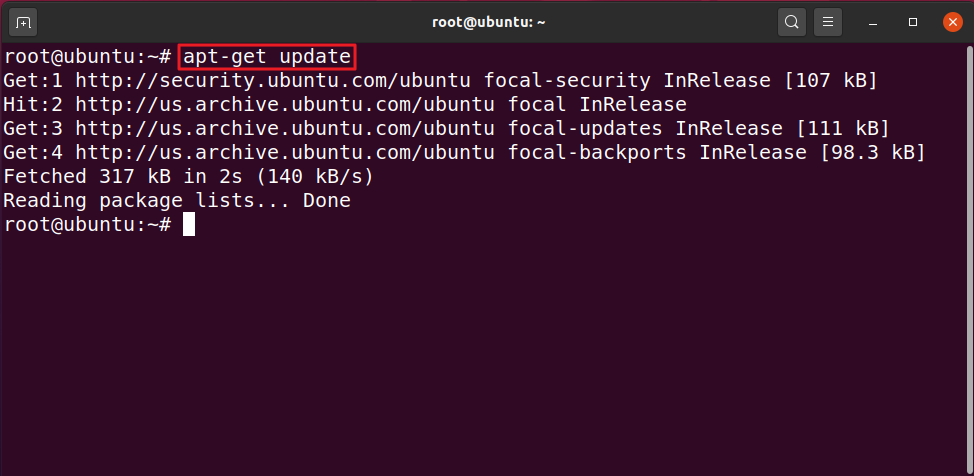 1. 먼저 “apt-get update” 명령어를 수행하여 설치 패키지를 최신 버전으로 설정합니다.