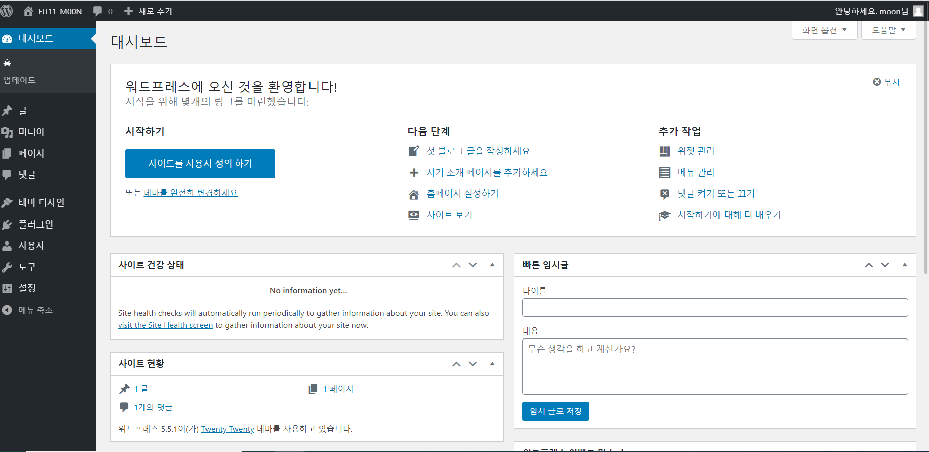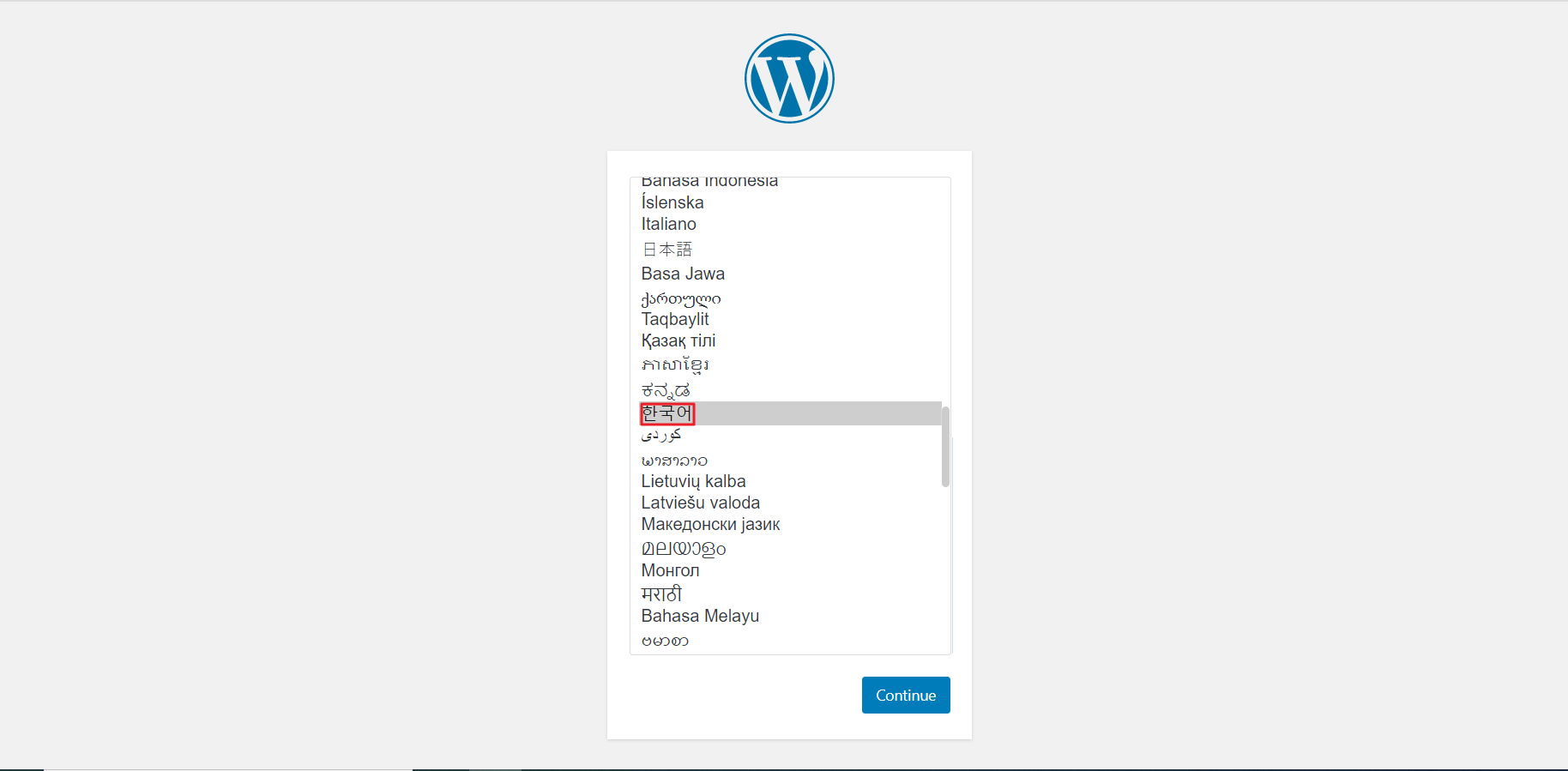 8. 워드프레스 언어 설정을 알맞게 해준다.