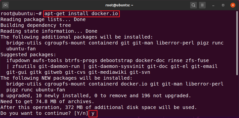 2. “apt-get install docker.io” 명령어를 수행하여 Docker 서비스를 설치합니다.