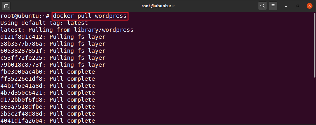 --name 옵션으로 이름을 wordpress로 지정한다.