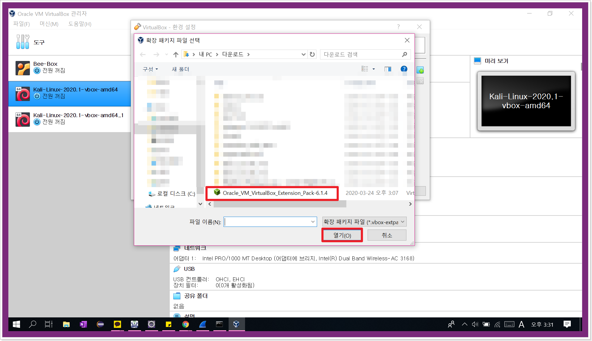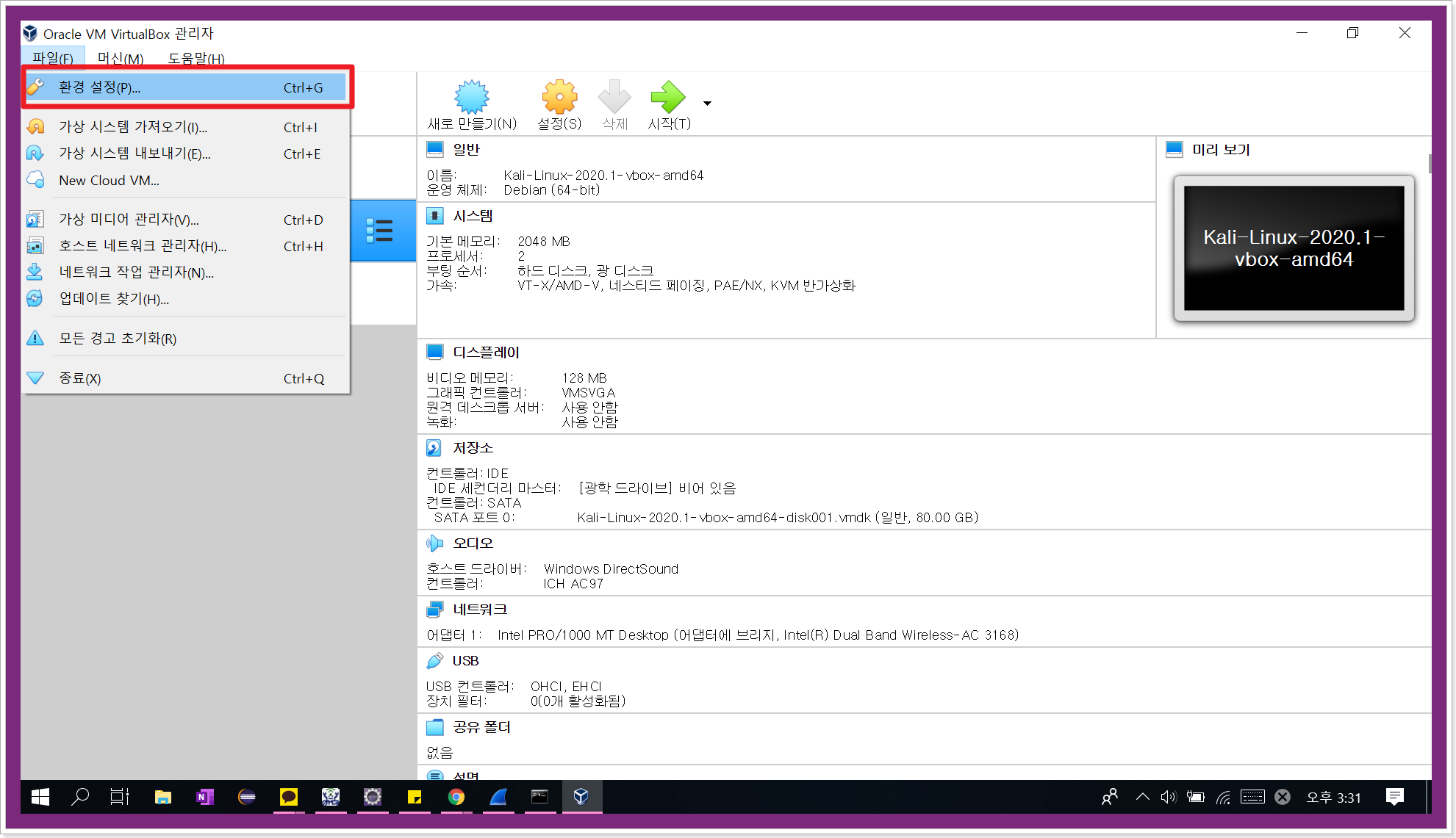 칼리리눅스 가상머신을 불러오려고 했는데,