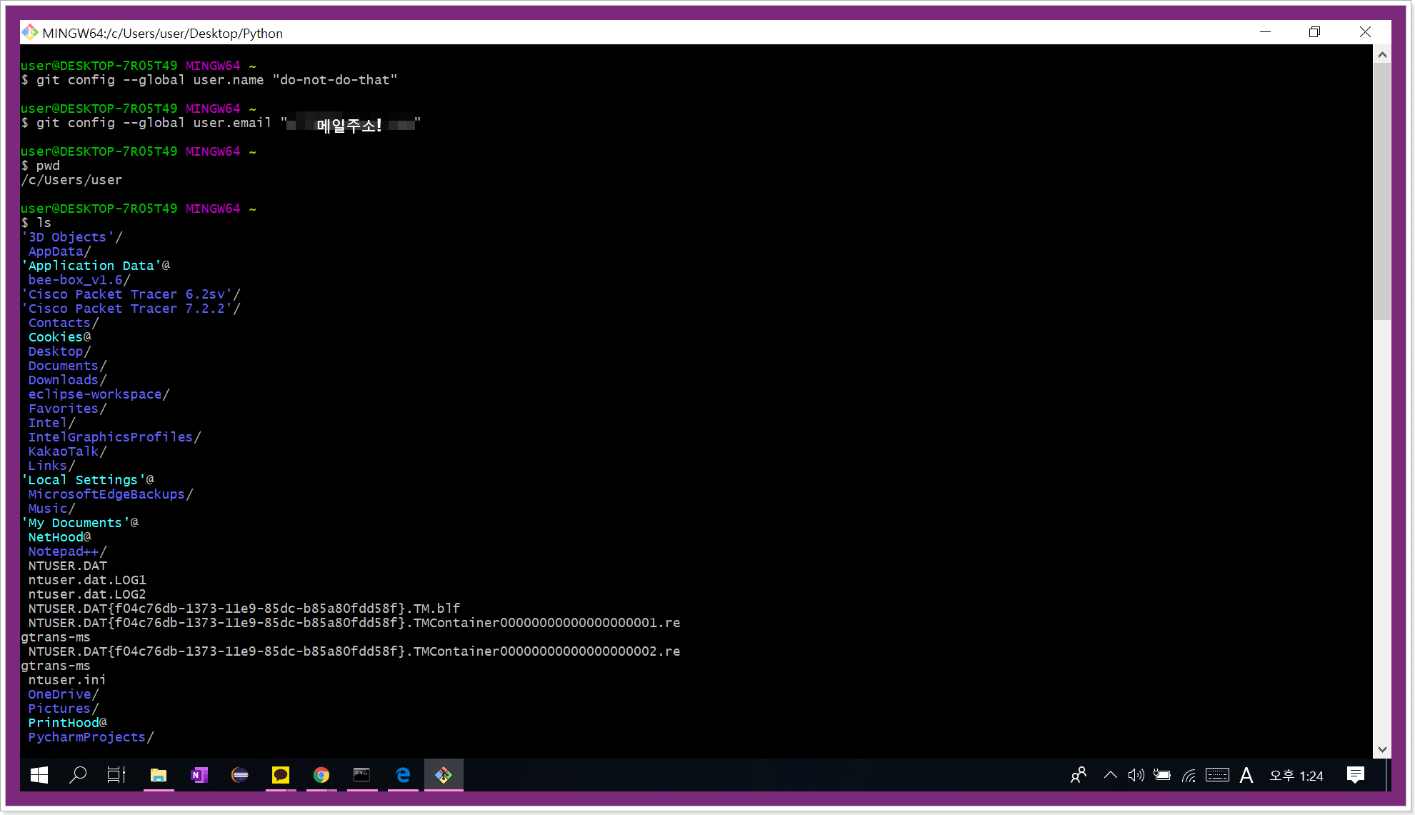 git config --global user.email "가입할 때 사용한 메일 주소"