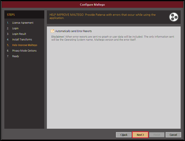 Install Transforms를 확인하고 Next를 클릭합니다.