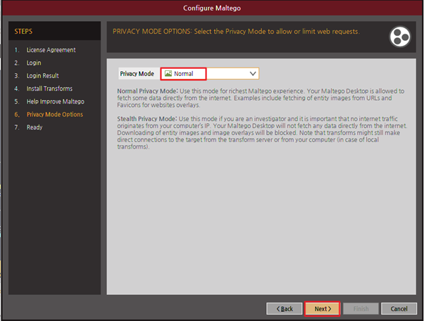 Privacy Mode를 Normal로 선택한 후 “Next”를 클릭합니다.