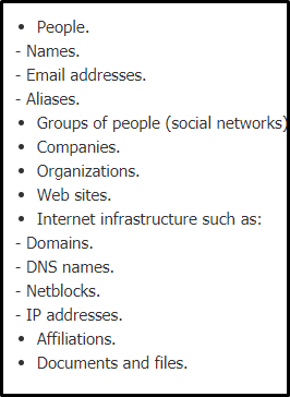 수집되는 정보는 주로 이름, 이메일, 조직 구조, 도메인, 문서 등이며 수집된 정보 간의 관계를 찾기 위해 방향 그래프라는 것을 활용합니다.