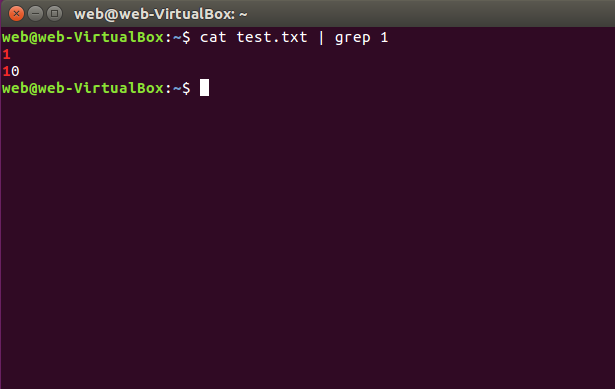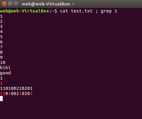 test.txt 안에 있는 1을 grep 해서 출력해온 결과이다.
