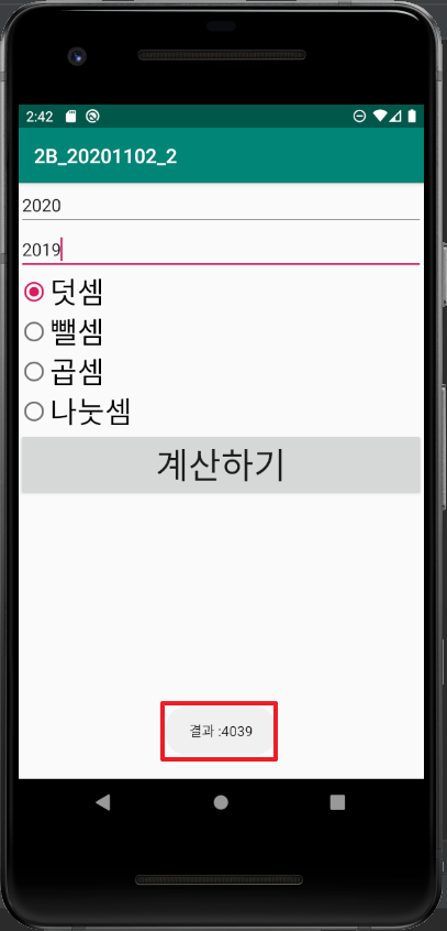 Toast.makeText(getApplicationContext(),"결과 :"