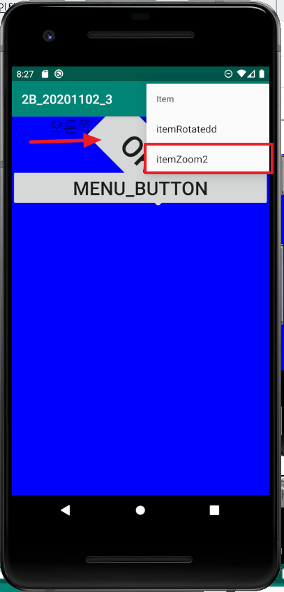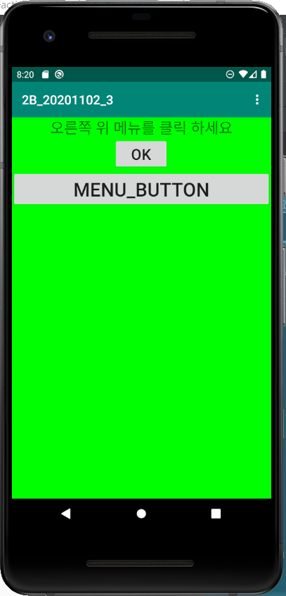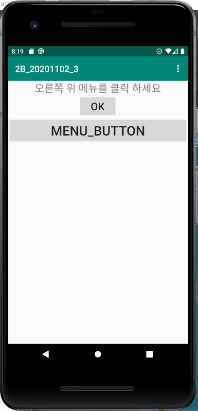 android:text="오른쪽 위 메뉴를 클릭 하세요"