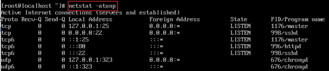 5. 현재 시스템이 오픈한 서비스와 그 포트 목록 확인
