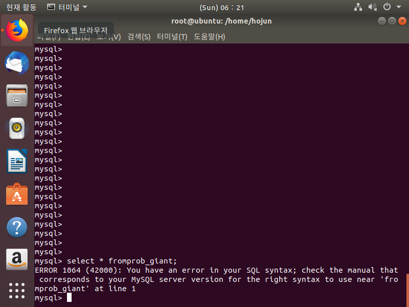 이렇게 띄어쓰기를 안하고 fromprob_giant 를 쓰면 syntax 에러 라고 알려주네요!!
