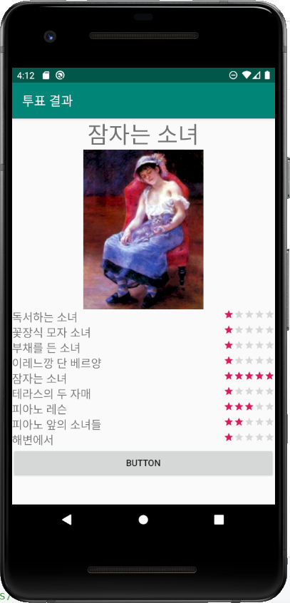 또한 ratingbar를 이용하여 명화가 투표를 받은 만큼 각각의 명화 이름에 맞게 별이 채워져야한다.