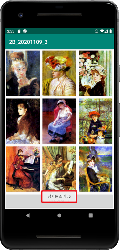 현재 각각의 명화에 투표를 1개씩하고 잠자는 소녀는 5개를 한 상황.