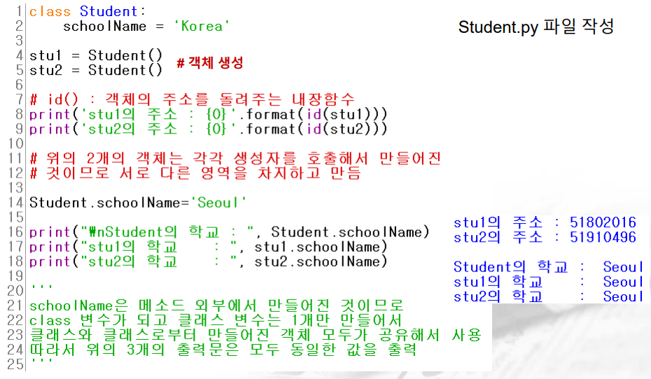 - 클래스 변수는 클래스 이름을 이용해서 수정하면 클래스 변수가 수정되지만 객체