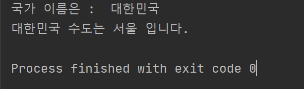 print("{0} 수도는 {1} 입니다.".format(self.name, self.capital))