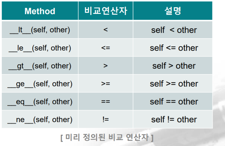 비교 연산자 오버로딩 메소드