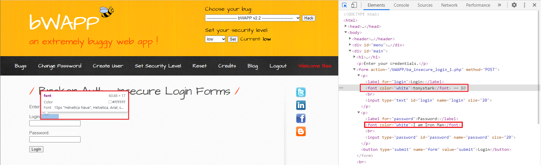 [bee-box]Broken Auth. - Insecure Login Forms 본문