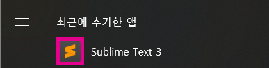 최근에 추가한 앱에 Sublime Text3 가 정상적으로 설치된 것을 확인할 수 있습니다.