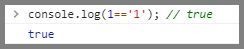 자바스크립트에서 동등연산자(==)는 1을 true로 인식하고,