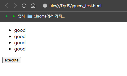 "execute_btn" 인 id값을 클릭하게된다면 id가 list인 li속성의 text를 "good"으로 바꾸는 코드입니다.