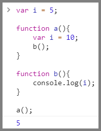 위의 예제는 함수 a 안의 변수 i 는 지역변수이기 때문에,