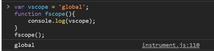 때문에 함수 fscope 내에서 vscope를 호출 했을 때 함수 밖에서 선언된 vscope의 값 global이 반환된 것입니다.