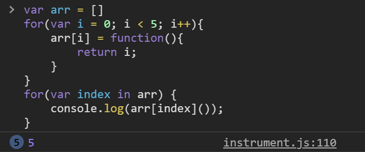 위의 예제의 결과 값은 5가 5번출력됩니다.