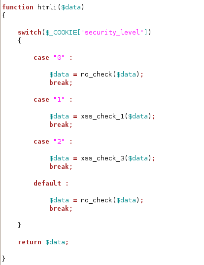 아까의 사진 1-6과 같이 case : 2 즉 레벨 High는 xss_check_3으로 가게 됩니다.