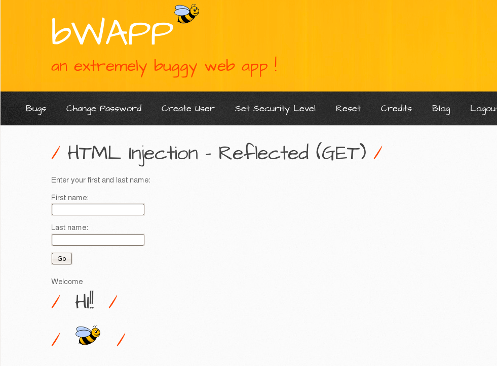 Last name: <img src= http://자신의 주소/bWAPP/images/bee_1.png>