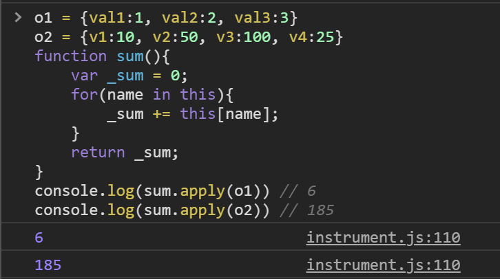 console.log(sum.apply(o1)) // 6