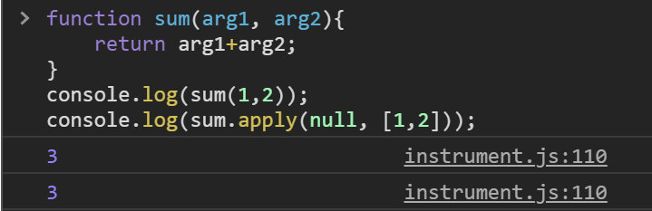 함수 sum은 Function 객체의 인스턴스 입니다. 그렇기 때문에 객체 Function 의 메소드 apply를 호출 할 수 있습니다.