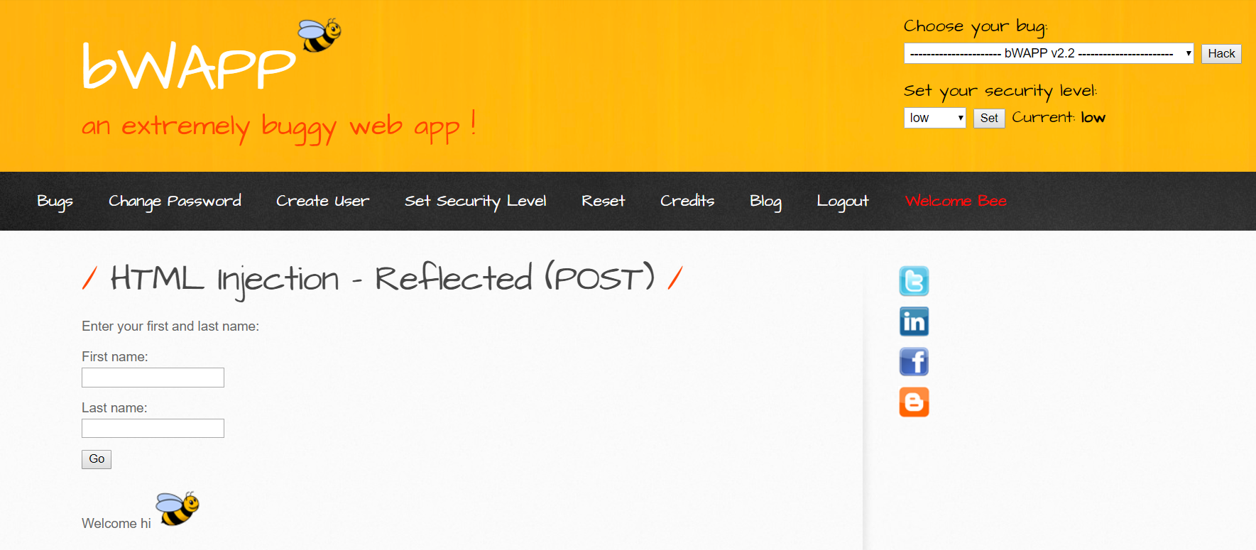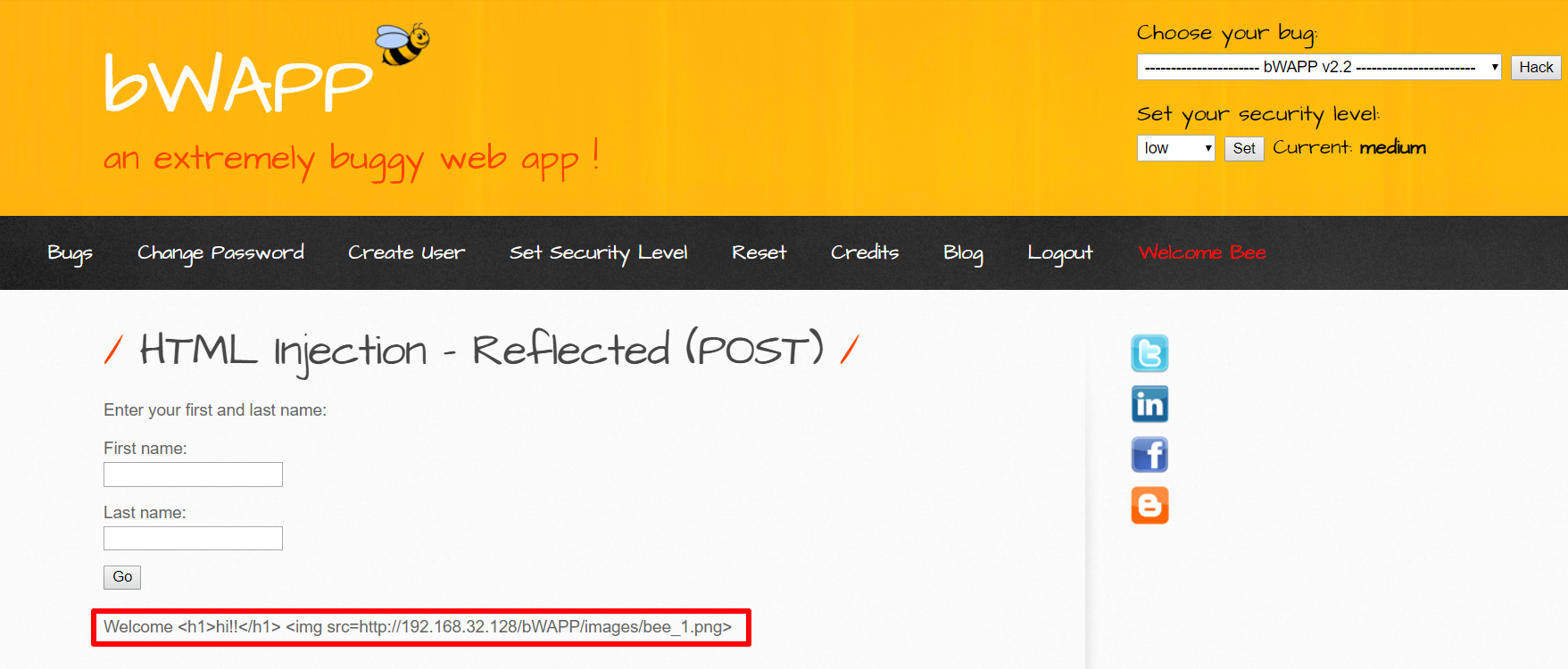 2-2. bee-box 를 사용하여 HTML Injection 알아보기! 본문