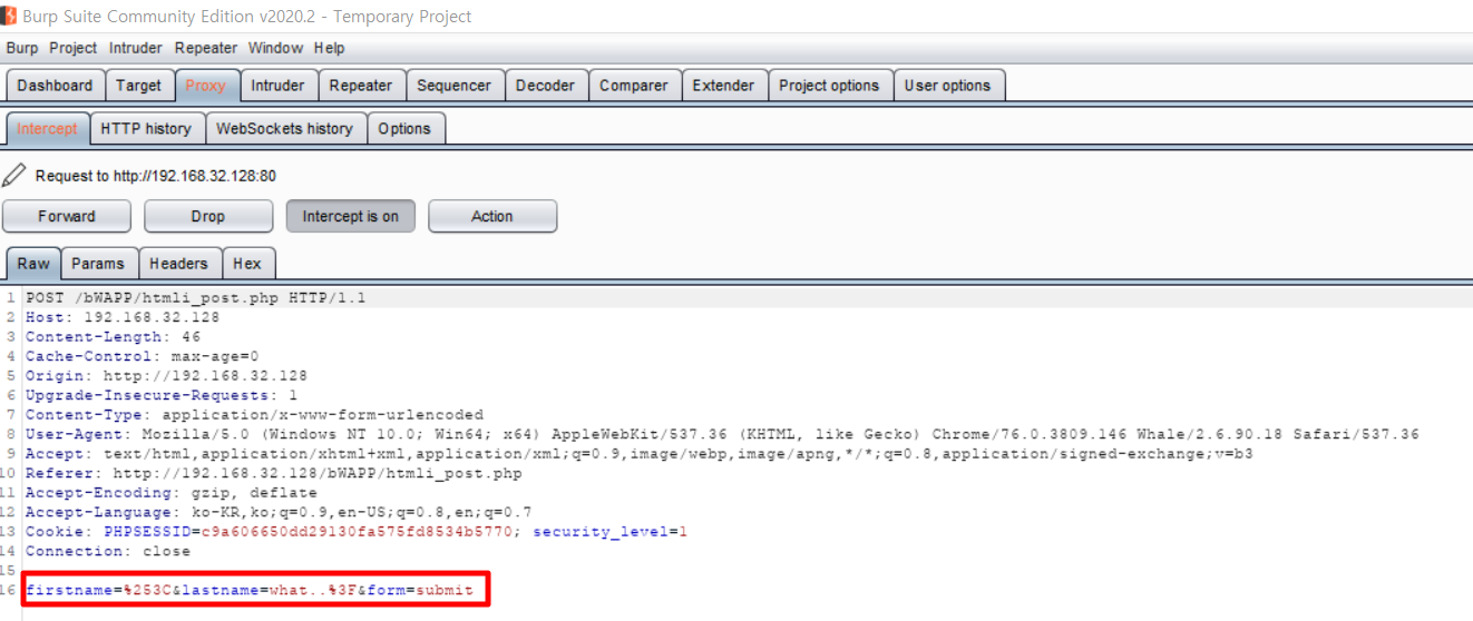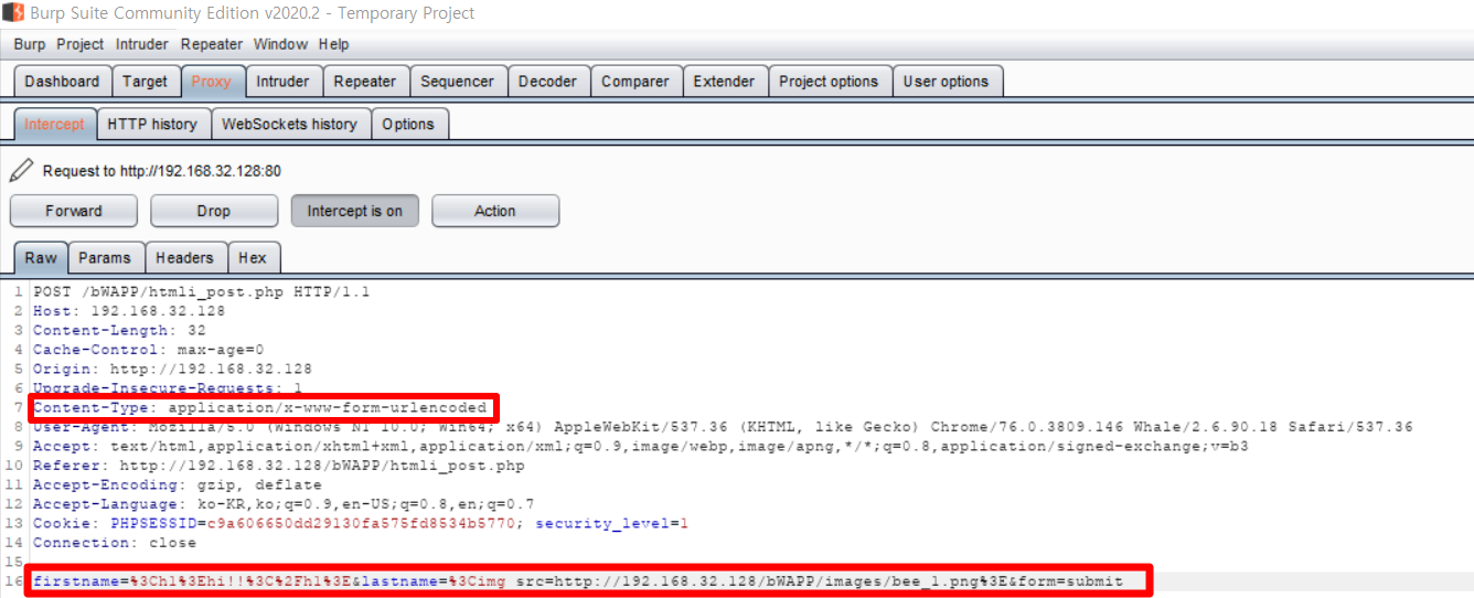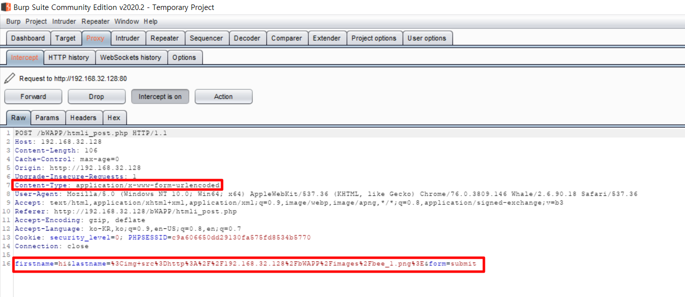 /var/www/bWAPP 안에서 htmli_post.php의 코드를 확인해보면