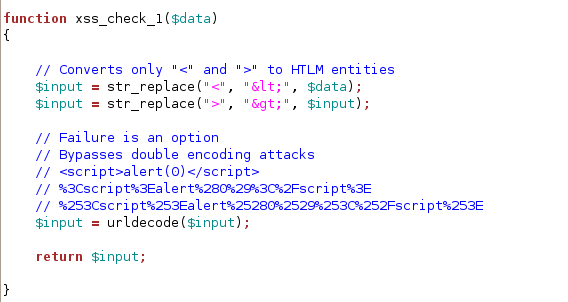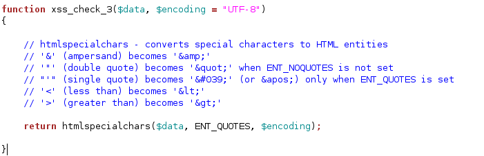 xss_check_3는 htmlspecialchars 함수를 사용하고 이것은 PHP에서 제공하는 기본 함수입니다.
