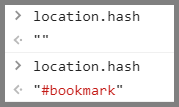 첫번째 location.hash 는 #bookmark 를 입력하기 전 출력입니다.