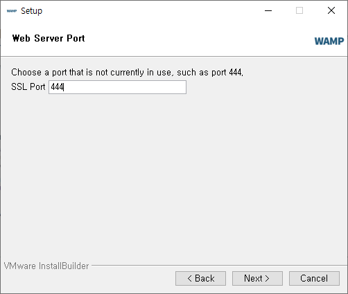 6. SSL을 사용할때 포트번호를 묻는것입니다. 기본값 "444" 로 지정후 "Next" 클릭