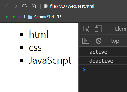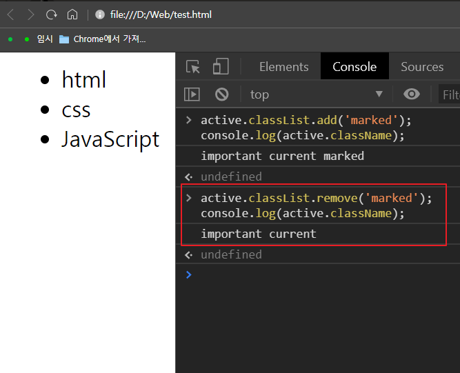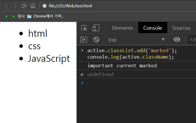 실행시켜보면, marked 라는 class 명이 추가된 것을 확인할 수 있습니다.