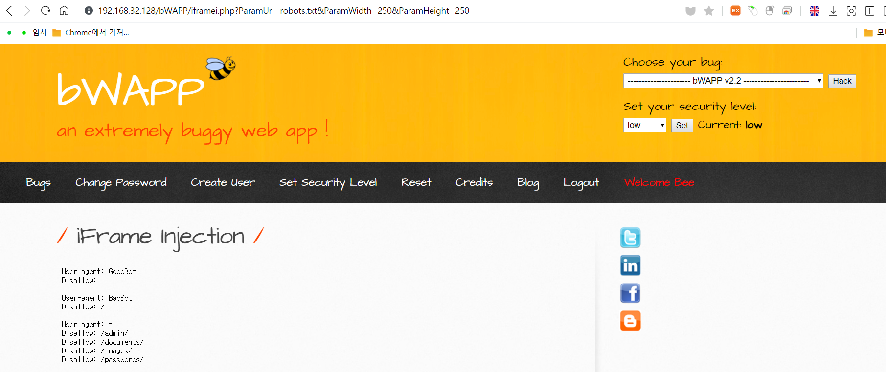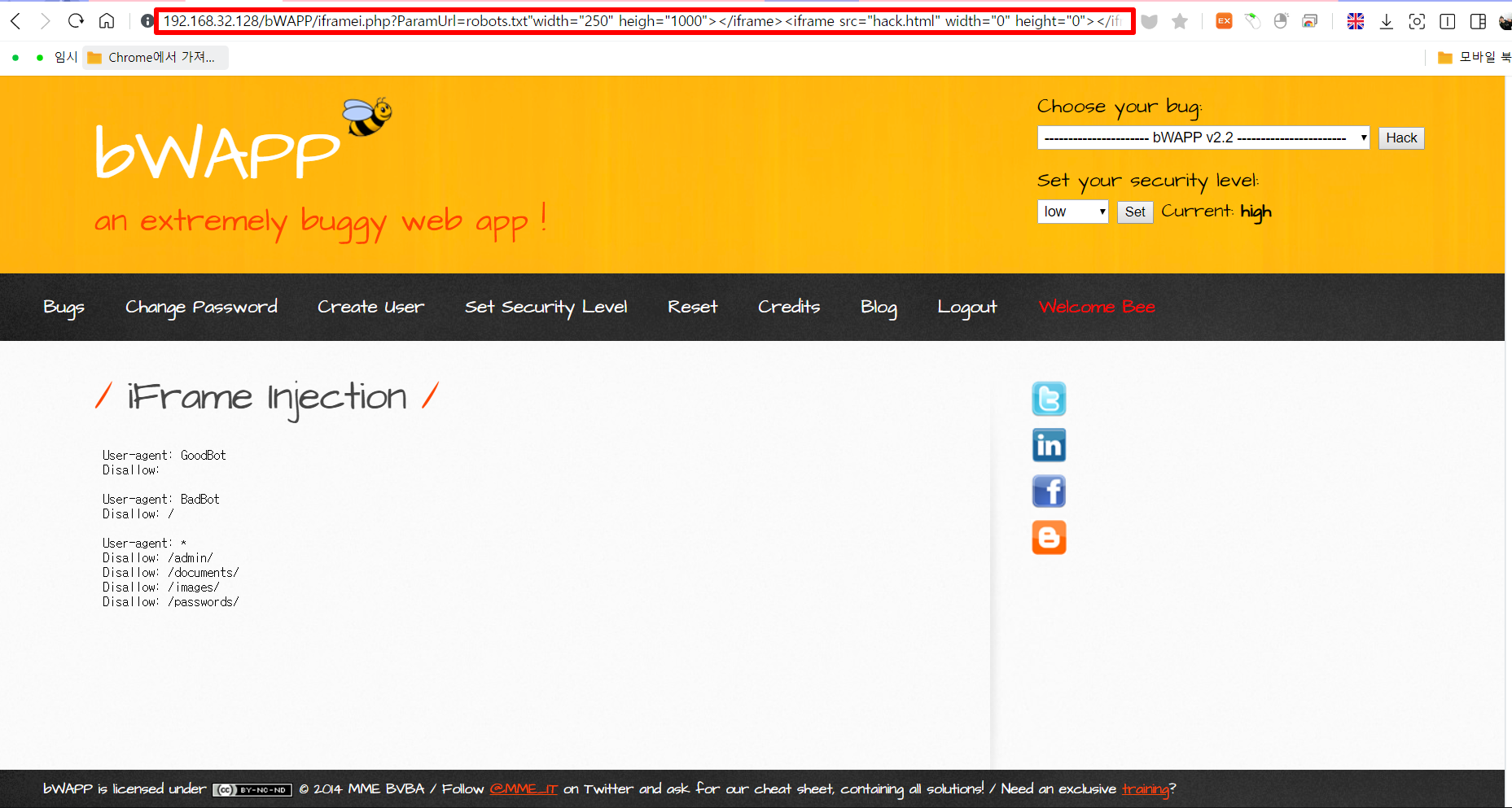 3-1. bee-box 를 사용하여 iframe Injection 공격 알아보기 본문