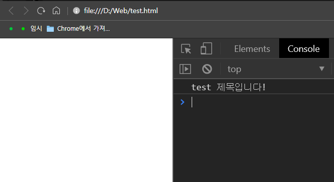 문서의 title 인 "test 제목입니다!" 가출력되는 것을 확인할 수 있습니다.