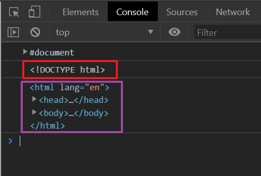 //document 객체의 자식으로는 Doctype과 html이 있다.