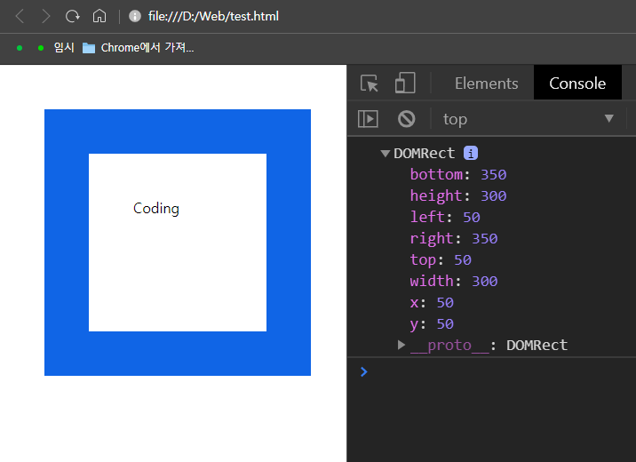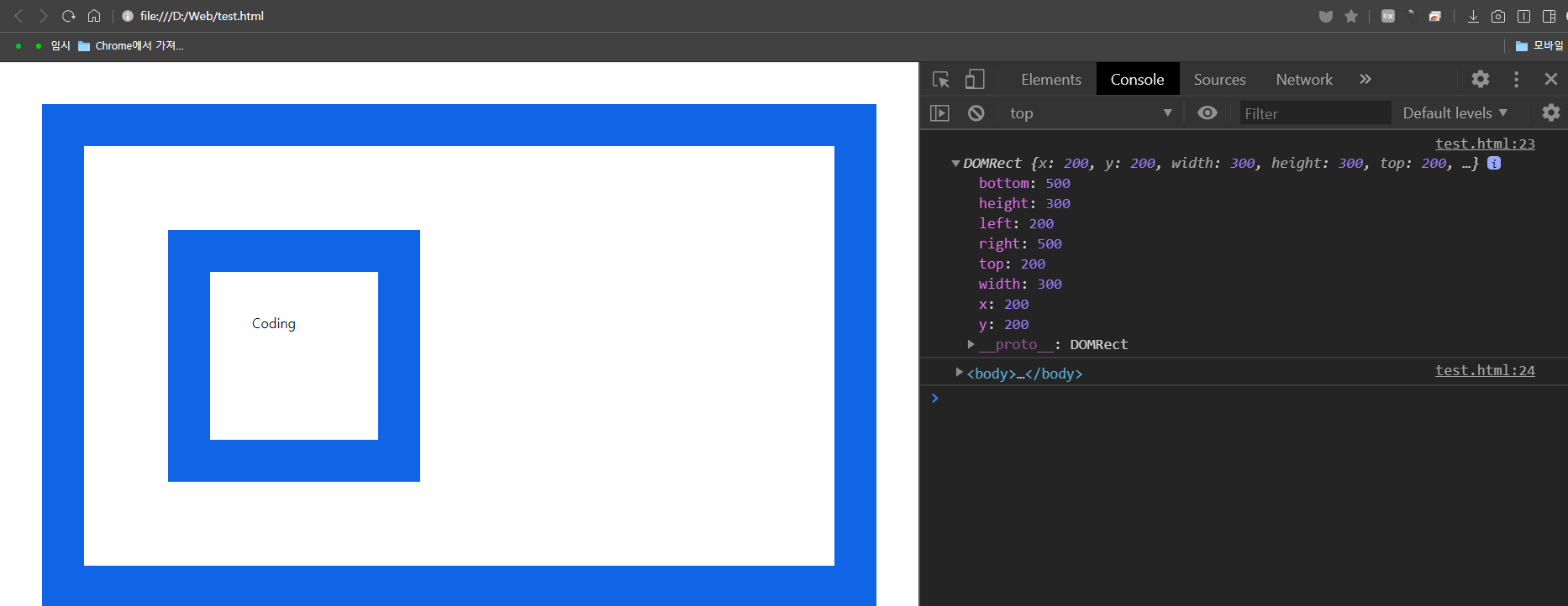 이를 통해서 알 수 있는 것은 getBoundingClientRect의 값이