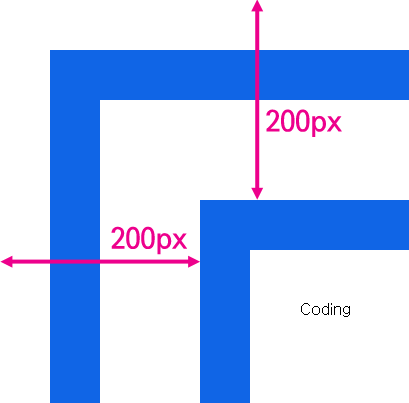 엘리먼트가 중첩되어 있다면 위와같이 coding 엘리먼트와 문서와의 거리는 200px입니다.