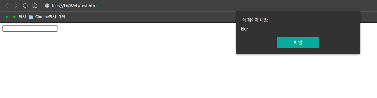 input 태그의 포커싱을 해제하면 아래와 같이 blur 라는 경고창이 출력됩니다.