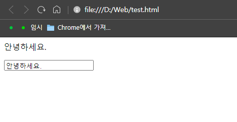 입력창에 입력하고 포커싱을 다른 곳으로 옮기면 입력한 값이 그대로 p 태그 안에 텍스트가 출력됩니다.