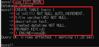 현재 저는 "FU11_M00N" 이라는 데이터베이스를 만들었습니다.
