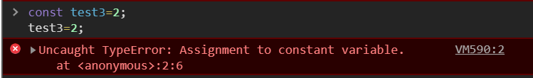 하지만 const 선언자를 사용하면 할당하면 아래와 같이 오류가 발생합니다.
