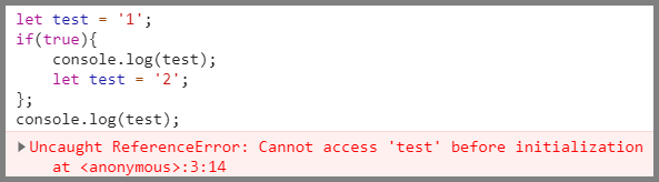 let test = '2'; // 선언문은 변수 test에 대한 tdz 종료