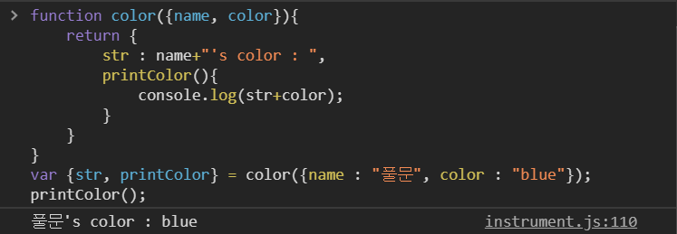 var {str, printColor} = color({name : "풀문", color : "blue"});